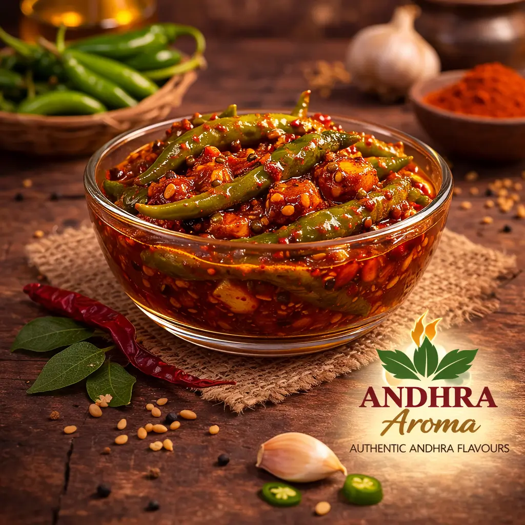 Crunchy Chilli pickle with aromatic spices - a traditional Andhra delicacy