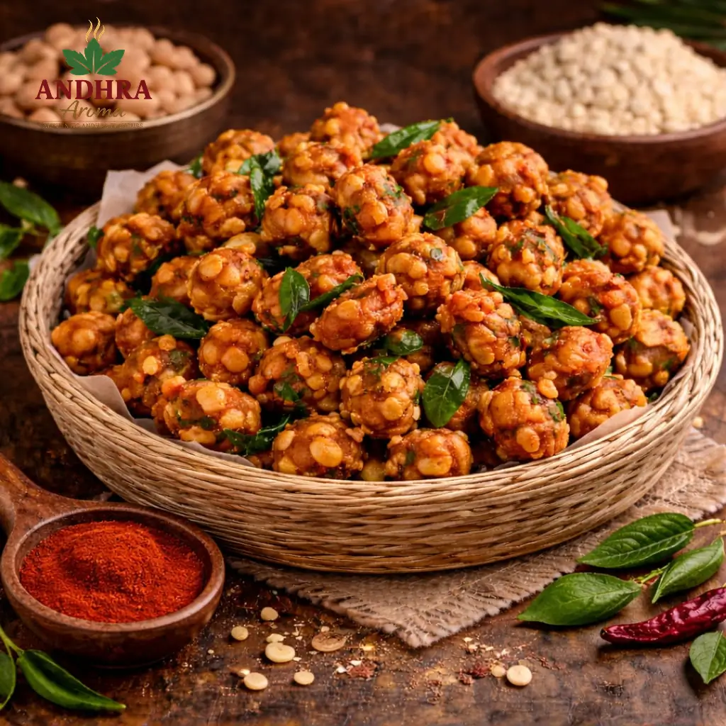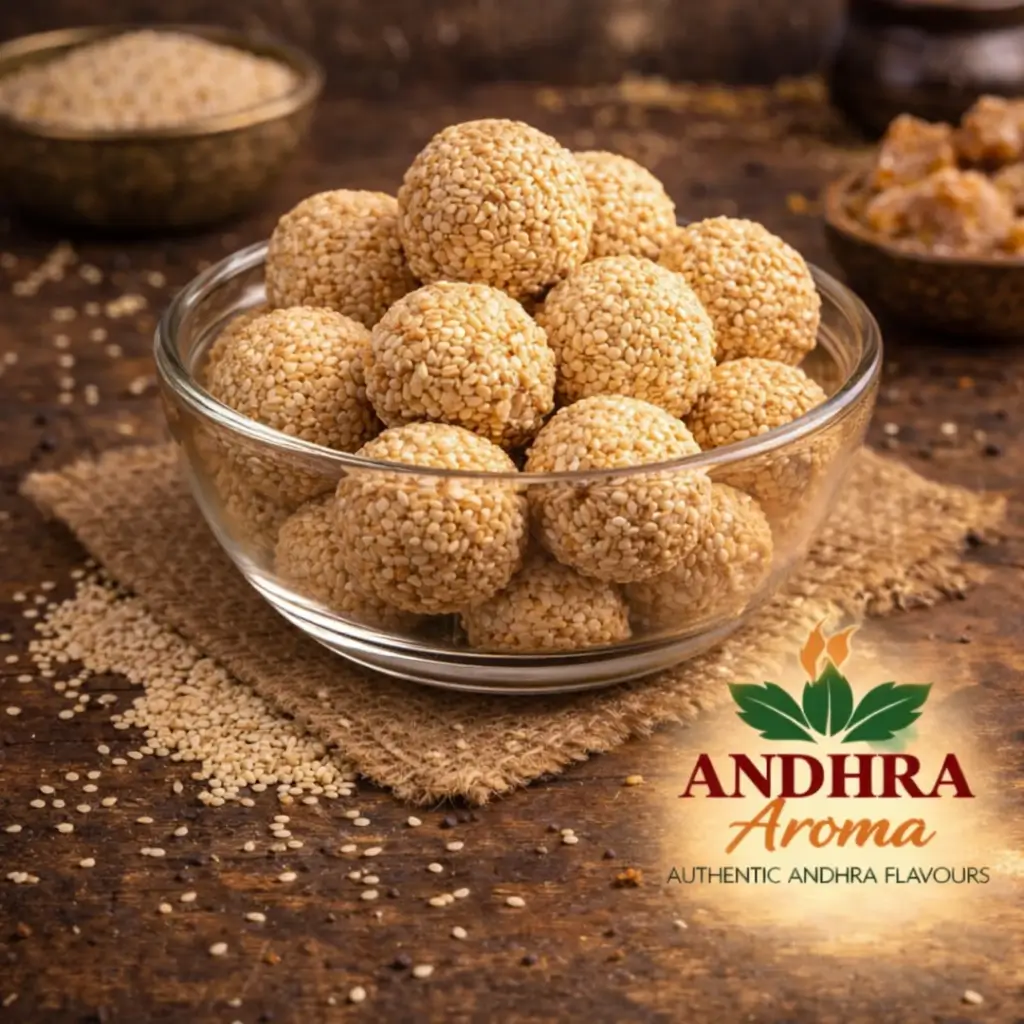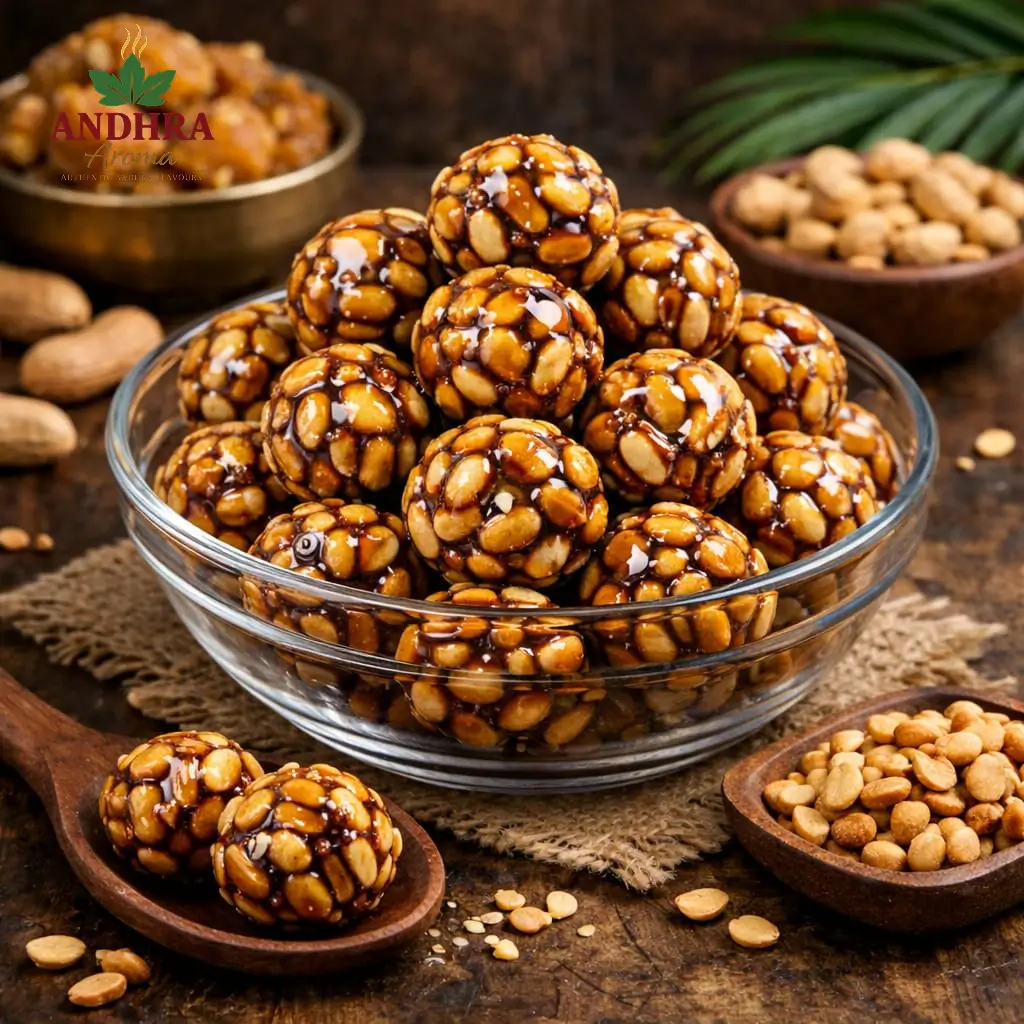 Protein-rich Andhra laddus made with roasted urad dal and pure ghee.